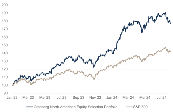 Das Cronberg North American Equity Selection Portfolio ist ein aktiv verwaltetes Aktienzertifikat, das ausschliesslich in Aktien aus Nordamerika investiert. Der Fokus liegt dabei auf Unternehmen mit hoher Qualität und einem atraktiven Wachstumspotenzial. Das Produkt eignet sich als Baustein innerhalb eines diversifizierten Portfolios für Anleger und Anlegerinnen, die mit einer hohen Risikobereitschaft vom Wachstumspotenzial nordamerikanischer Unternehmen profitieren möchten.